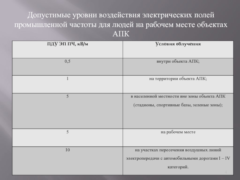 Е4факт – значение напряженности электрического поля, создаваемого бытовой техникой кроме ПЭВМ, используемой на объектах АПК, на частоте 50 Гц, кВ/м.