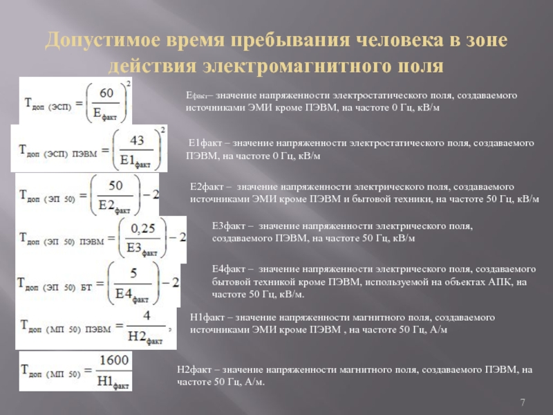 Е2факт – значение напряженности электрического поля, создаваемого источниками ЭМИ кроме ПЭВМ и бытовой техники, на частоте 50 Гц, кВ/м