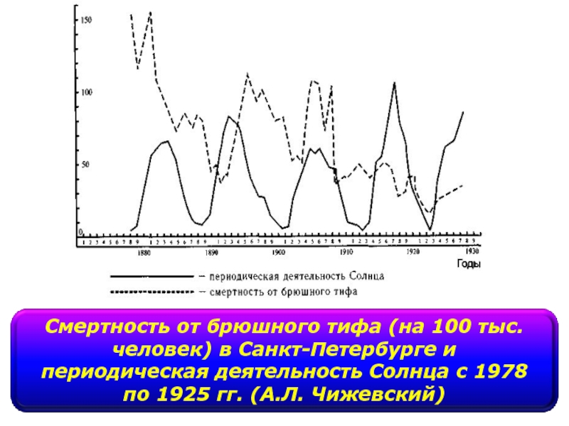 Смертность от брюшного тифа (на 100 тыс. человек) в Санкт-Петербурге и периодическая деятельность Солнца с 1978 по