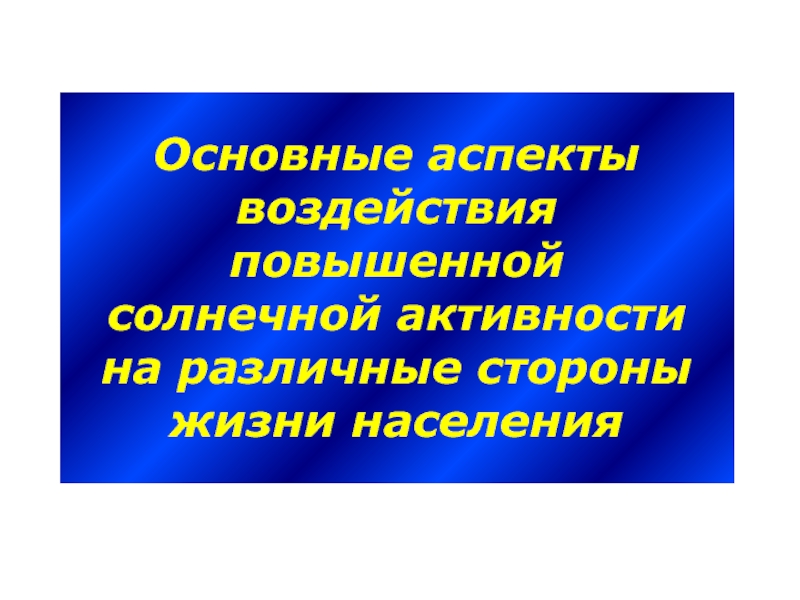 Основные аспектывоздействияповышеннойсолнечной активностина различные стороныжизни населения