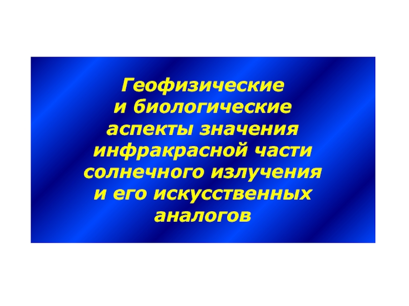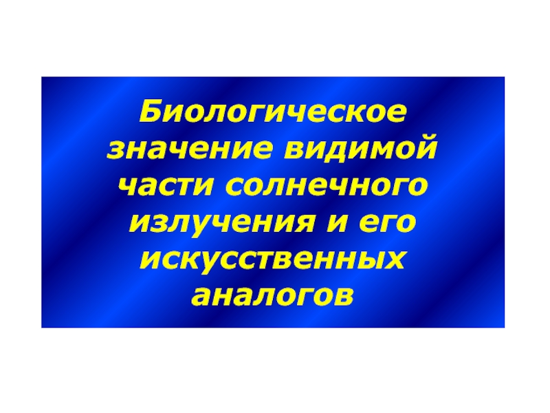 ЛекцияГигиеническиеаспекты солнечнойрадиациии ее искусственныханалогов