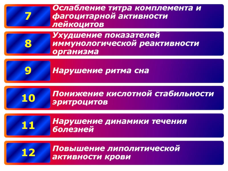 Замедленный рост и развитие детейНарушение фосфорно-кальциевого обменаСнижение резистентности стенки (ломкость) капилляров кожиНаличие свежих случаев рахитаРазвитие кариеса зубовОслабление