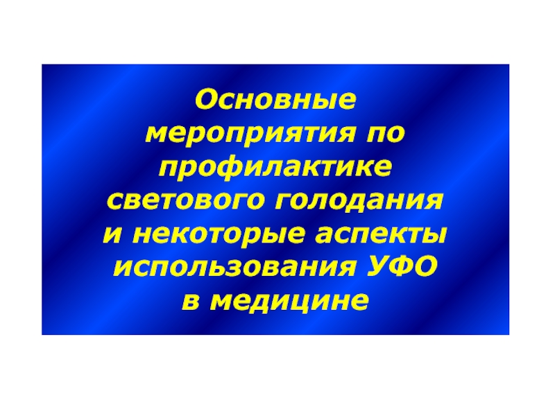 Основныемероприятия попрофилактикесветового голоданияи некоторые аспектыиспользования УФОв медицине
