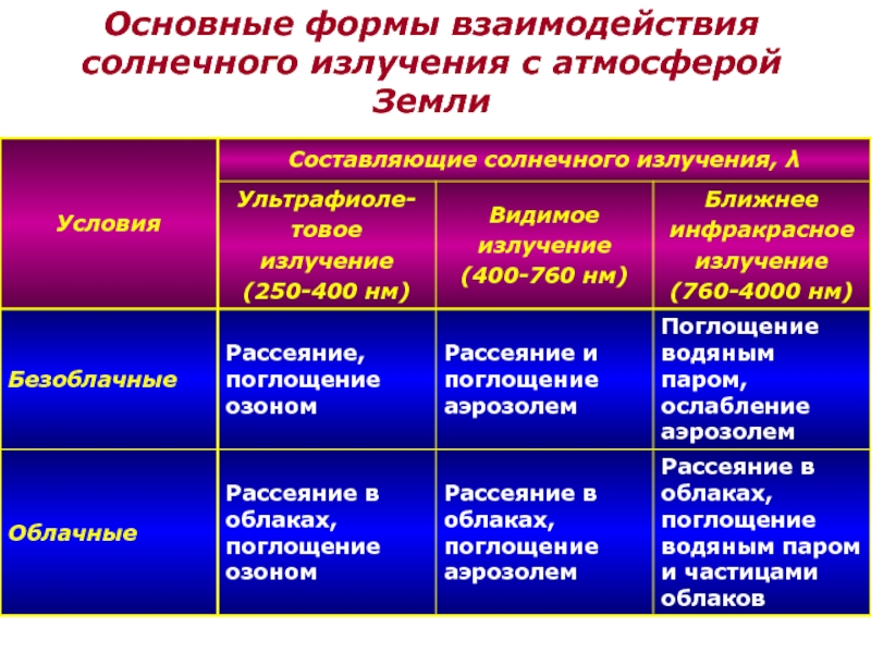 Основные формы взаимодействиясолнечного излучения с атмосферой Земли