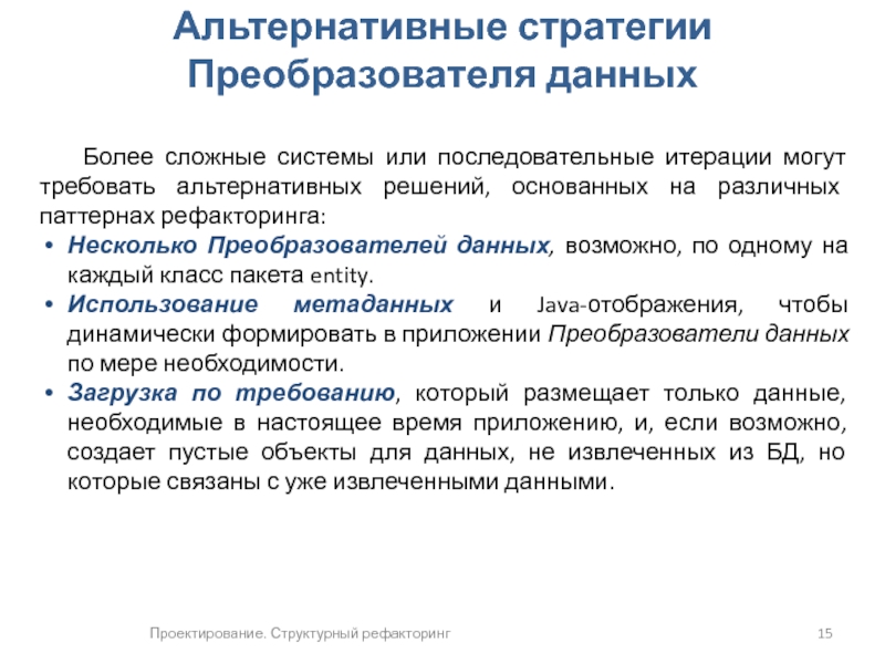 Он может проводиться в любом месте итерации, но наиболее эффективно выполнять его либо в конце текущей итерации, либо в начале следующей.Время и трудозатраты на сопровождение кода существенно превышают время и трудозатраты на написание кода. При сопровождении кода необходимо прочитать и попробовать понять его, чтобы затем изменить или расширить. Рефакторинг кода облегчает процесс сопровождения.