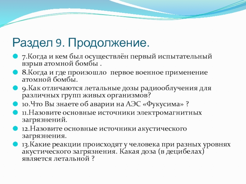 Раздел 3. Продолжение7. Дайте общую характеристику гидросферы Земли.8.Дайте краткую характеристику литосферы Земли.9.Что такое биосфера, кто и когда