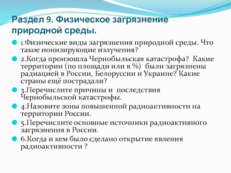 Раздел 14. Экология и здоровье человека. 1.Как влияет состояние окружающей среды на здоровье человека?2.Назовите основные проблемы с