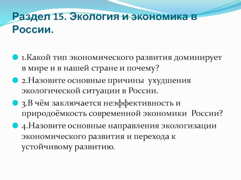 Раздел 15. Экология и экономика в России. 1.Какой тип экономического развития доминирует в мире и в нашей
