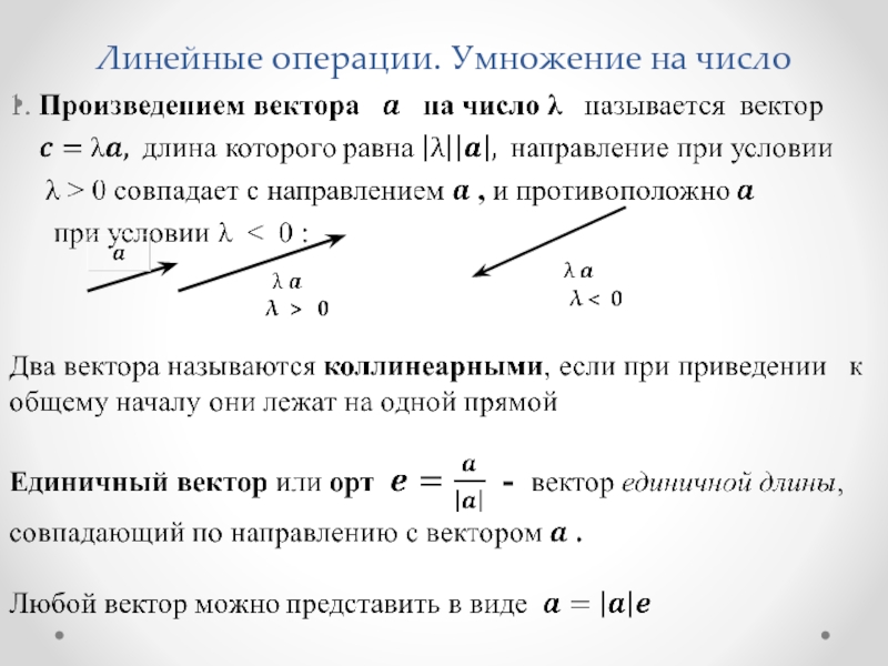 Слайд 5Линейные операции. Пример: деление отрезка в заданном отношении