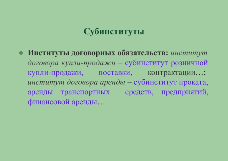 Подотрасль обязательственного договорного права: институты отдельных договорных обязательств - купли-продажи, аренды, подряда и т.д.