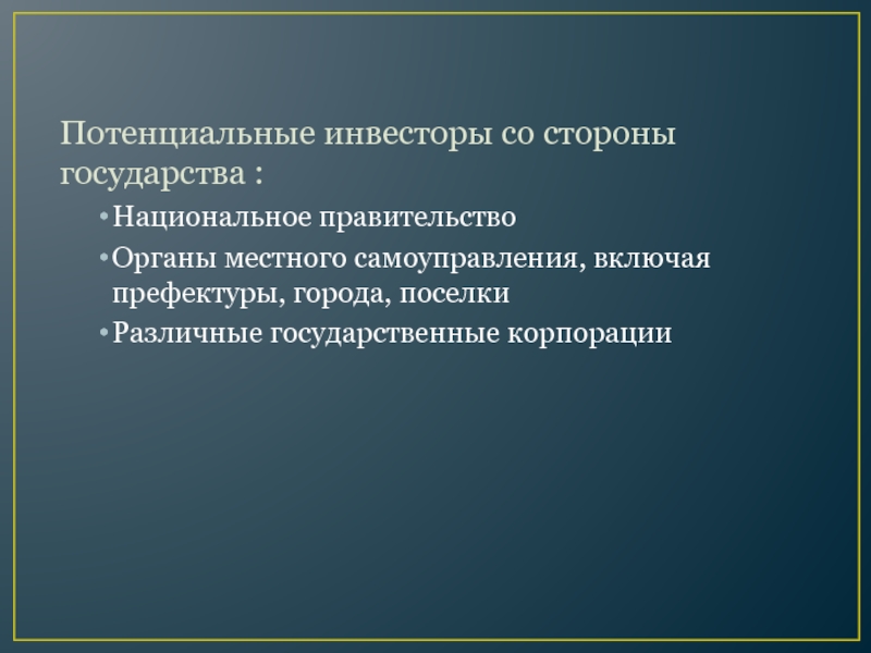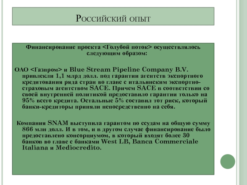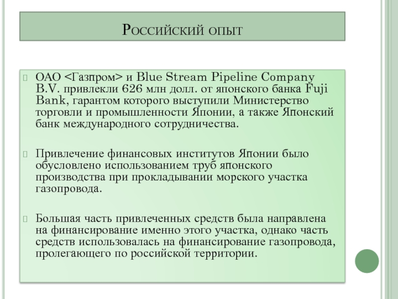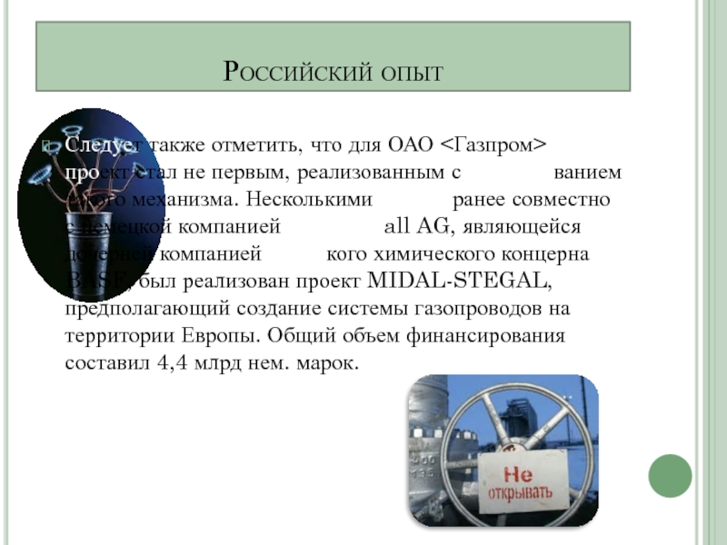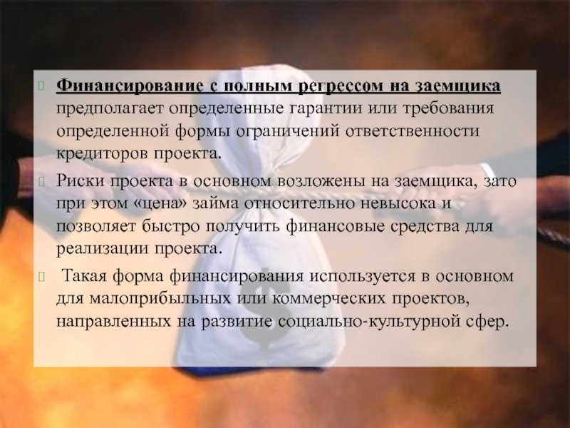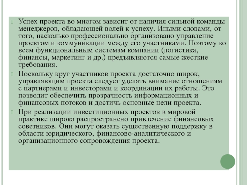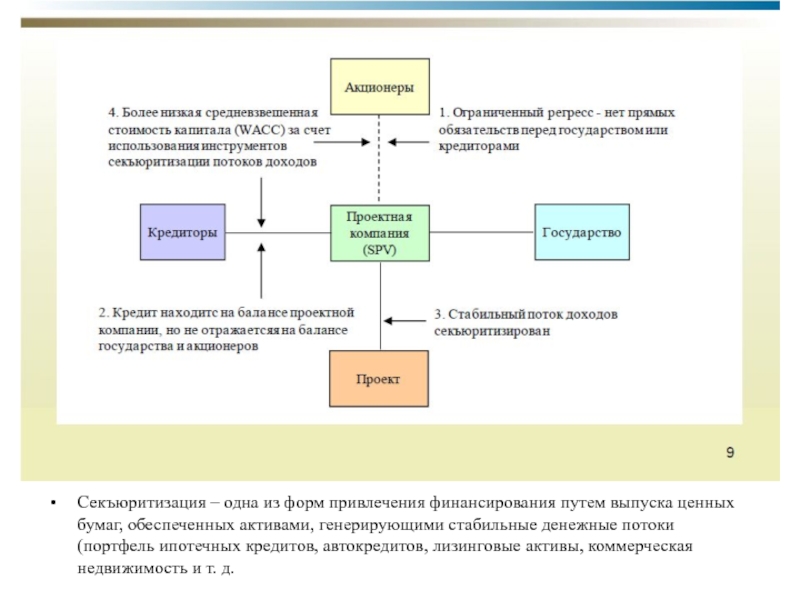 - специфические формы финансирования проектов: за счет частных инвестиций, дополненных государственными финансовыми ресурсами (нередко значительными), или же совместное инвестирование нескольких участников;