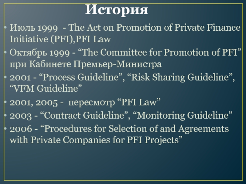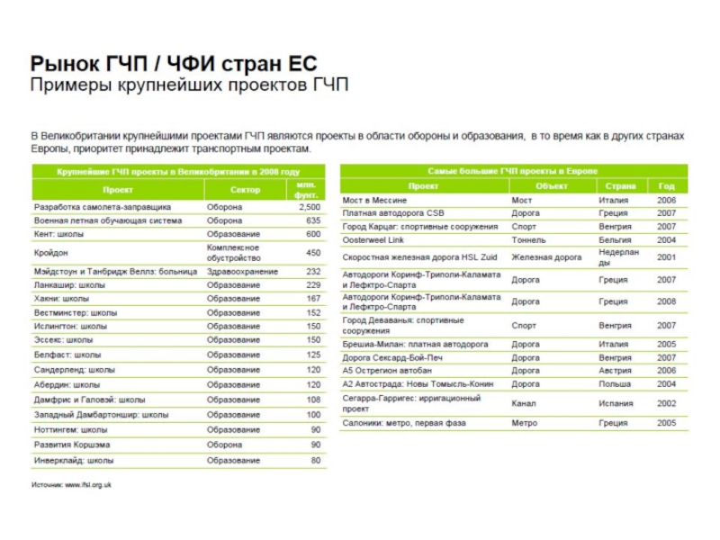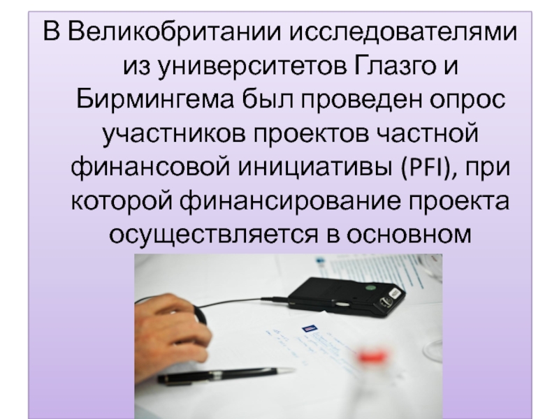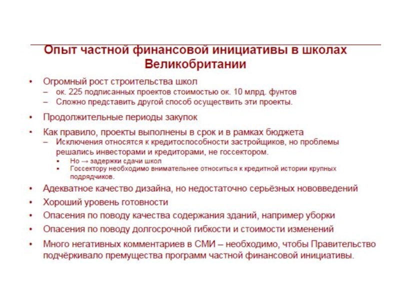 «частная финансовая инициатива» –частные консорциумы обеспечивают финансирование