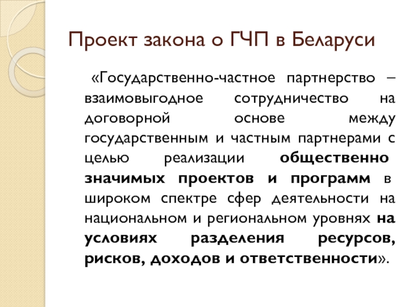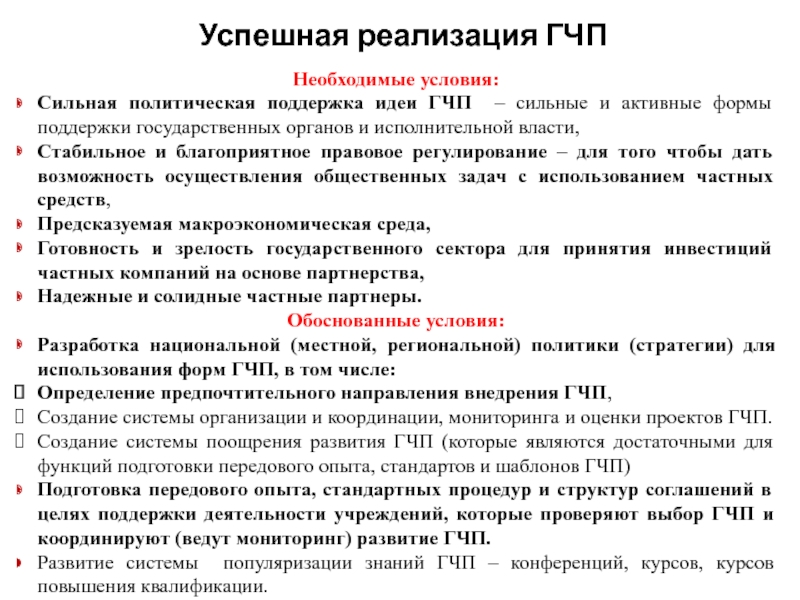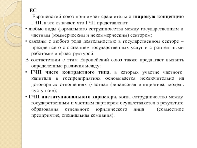 концепцию ГЧП, а это означает, что ГЧП представляют: