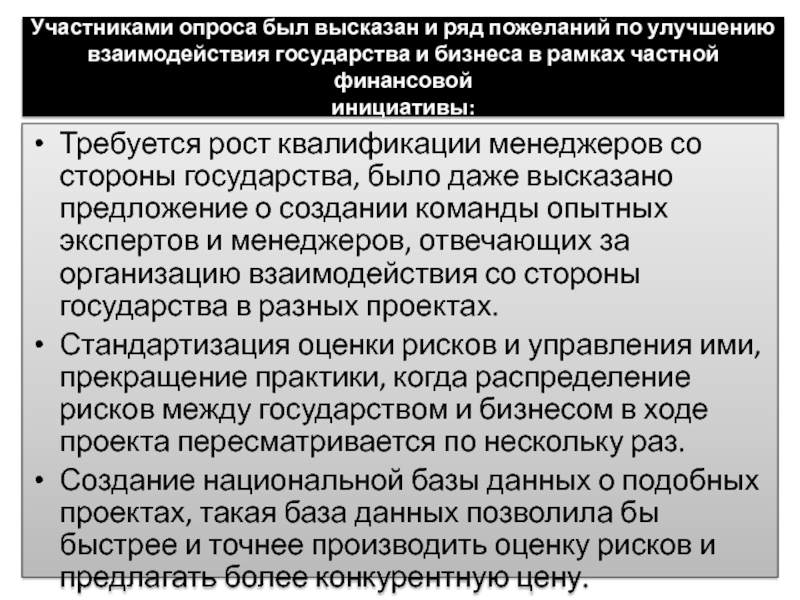 Повышение поддержки и гарантий государства партнерам из частного сектора.