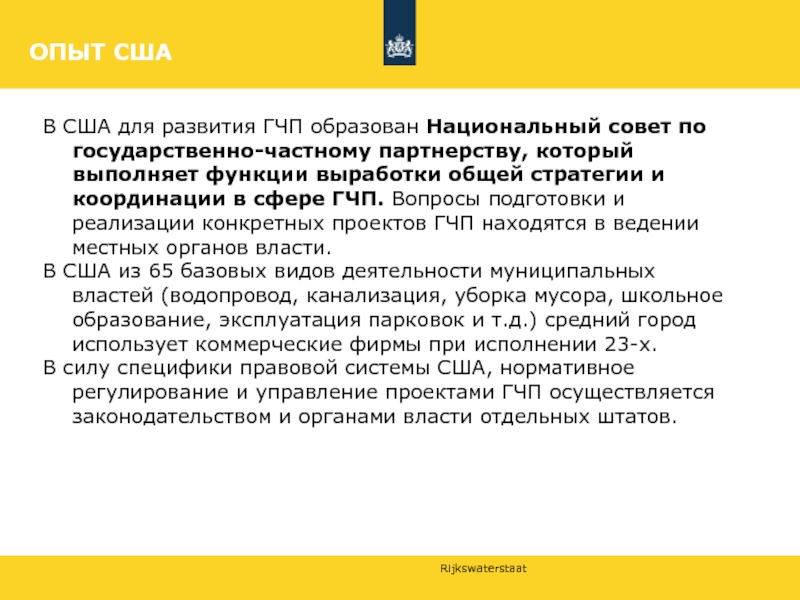 Слайд 7В США ГЧП понимается как контрактное соглашение между государственной структурой