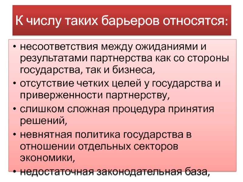 Слайд 279Барьеры успешной реализации концепции партнерства на практике (зарубежный опыт)