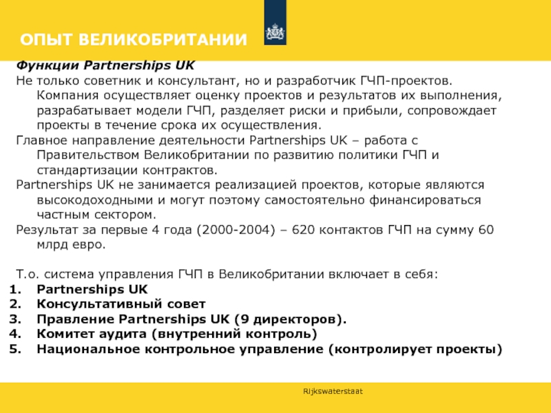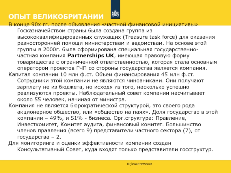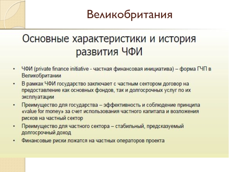 В Великобритании, где ГЧП получило довольно широкое распространение, эта