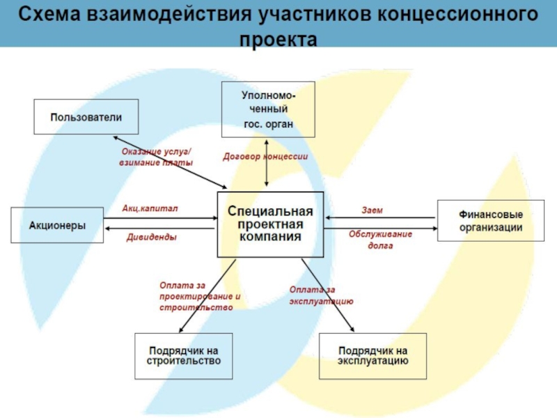финансирования, строительства и/или реализации и управления проектами, которые обычно рассматриваются как относящиеся к государственному сектору. Такие инфраструктурные проекты как дороги и мосты являются самым распространенным примеров таких проектов