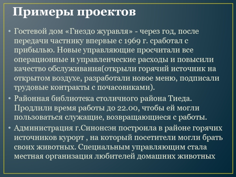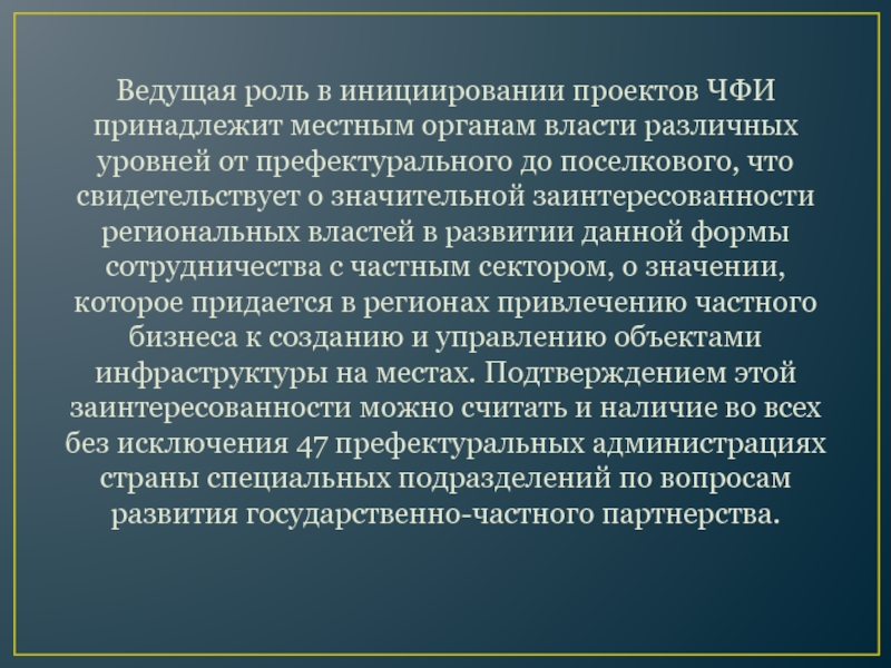 современного, высококачественного коммунального обслуживания и повышению конкурентоспособности страны. Государственно-частные партнерства имеют широкий диапазон бизнес-структур и форм товарищества: от “частной финансовой инициативы” до совместных предприятий и концессий, аутсорсинга, продажи части акций в принадлежащих государству предприятиях, осуществляющих коммерческую деятельность».