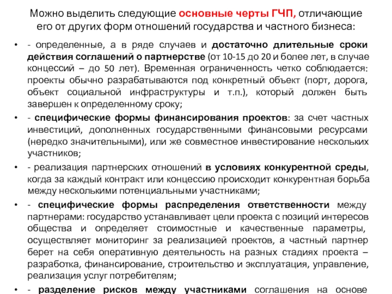 Слайд 16Можно выделить следующие основные черты ГЧП, отличающие его от других