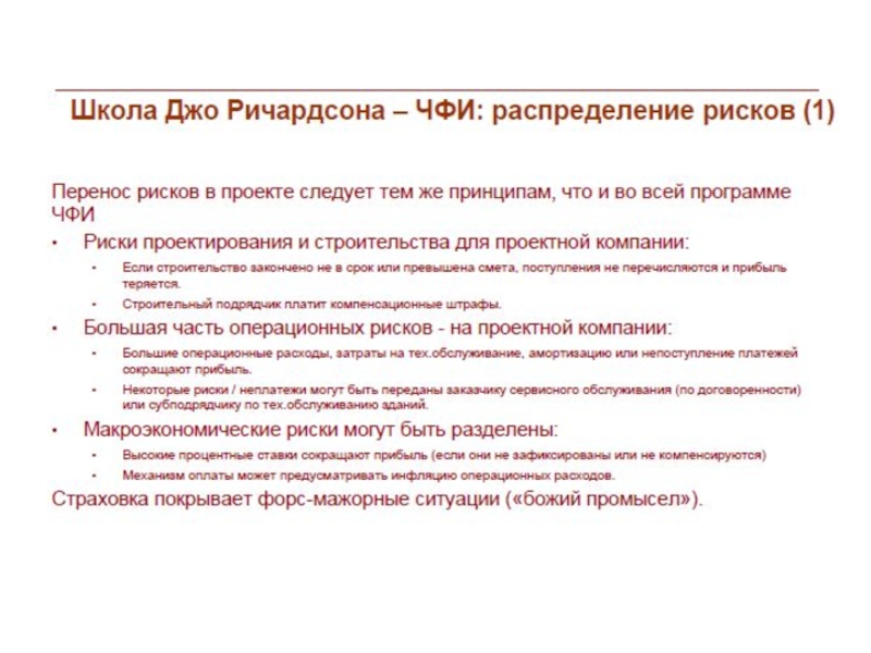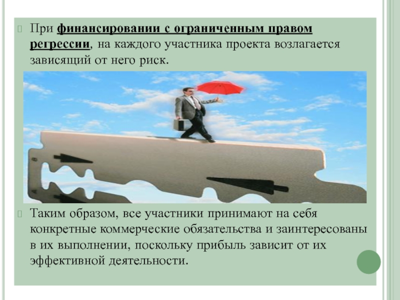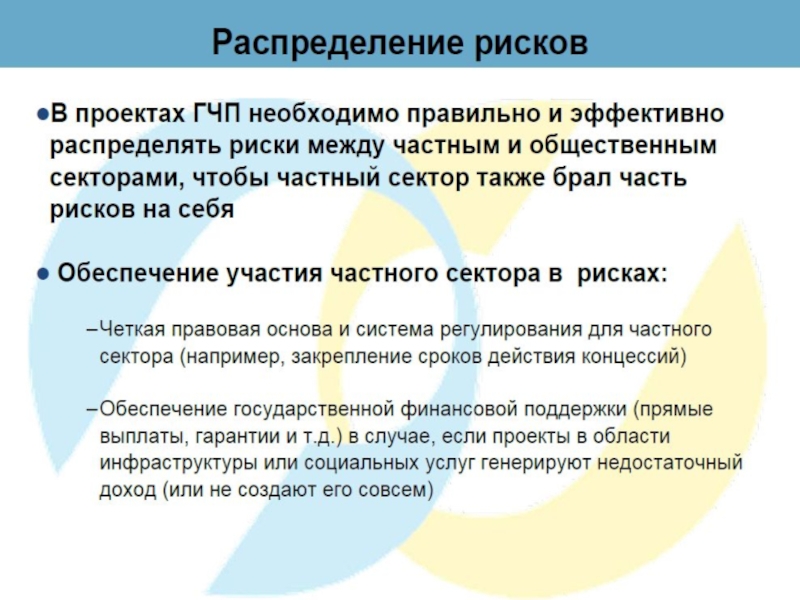 - разделение рисков между участниками соглашения на основе соответствующих договоренностей сторон