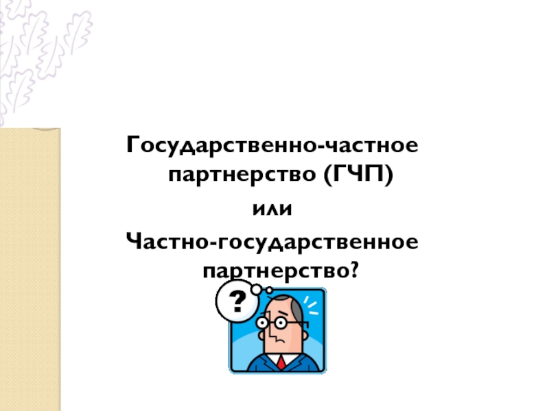 Большинство экспертов используют термин «государственно-частное партнерство» (ГЧП),
