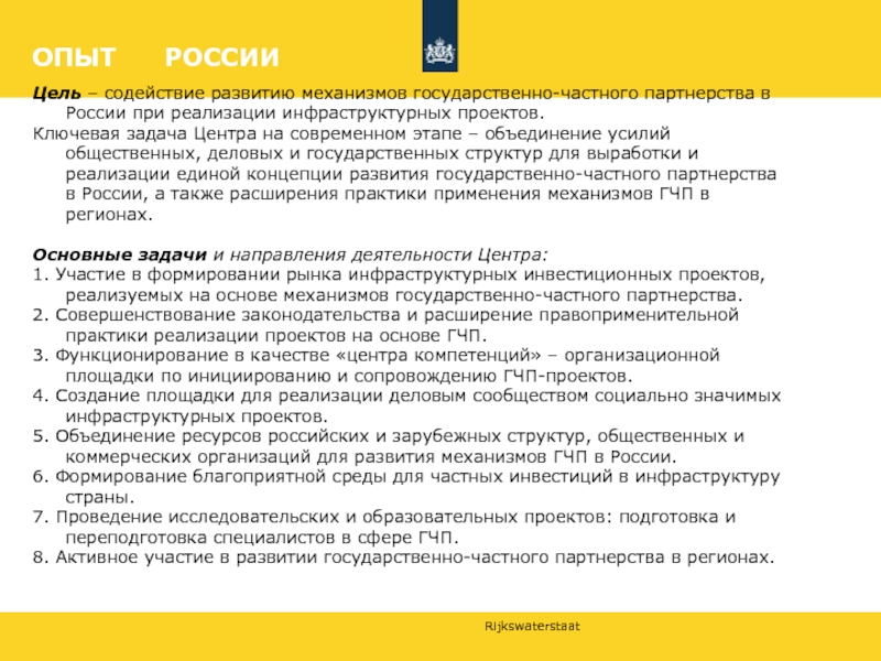 Цель – содействие развитию механизмов государственно-частного партнерства в России