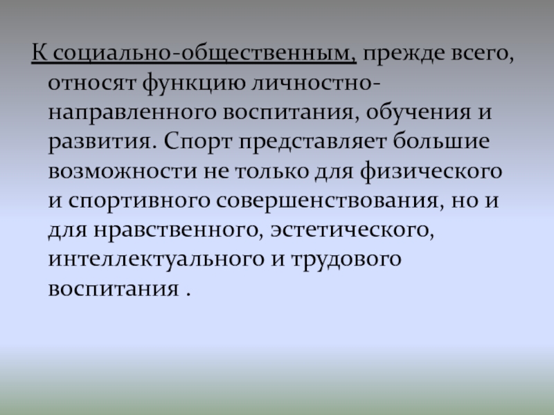 К социально-общественным, прежде всего, относят функцию личностно-направленного воспитания, обучения и
