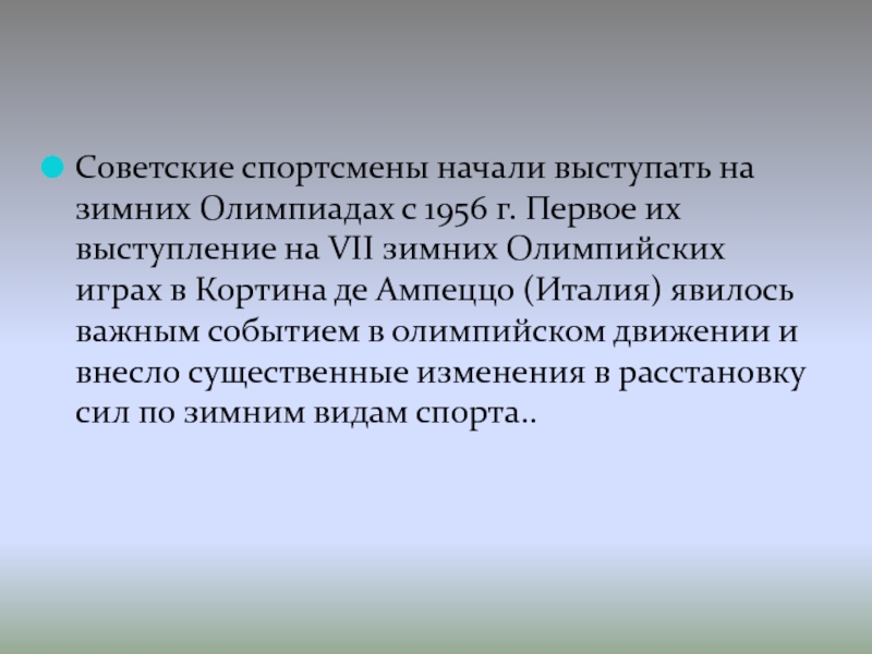 Советские спортсмены начали выступать на зимних Олимпиадах с 1956 г.