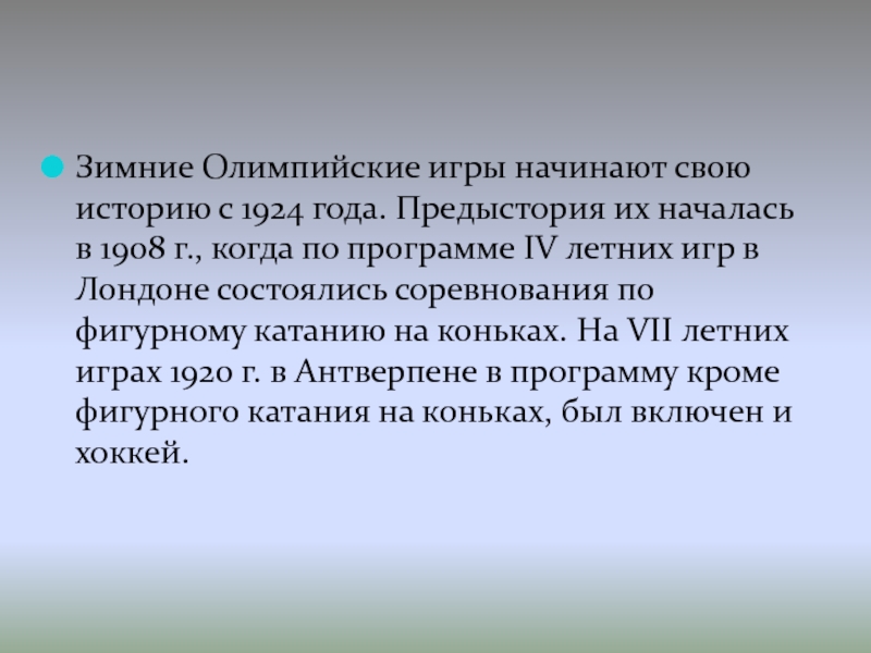 Зимние Олимпийские игры начинают свою историю с 1924 года. Предыстория