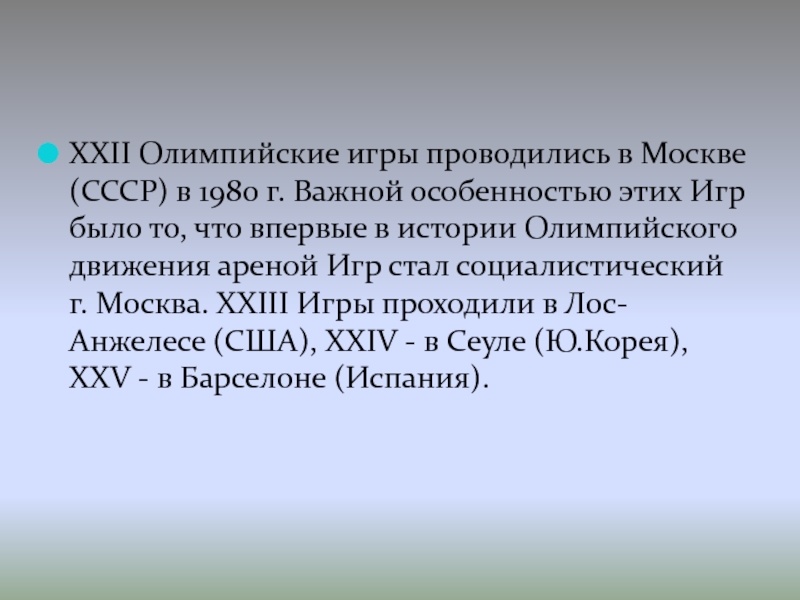 XXII Олимпийские игры проводились в Москве (СССР) в 1980 г.