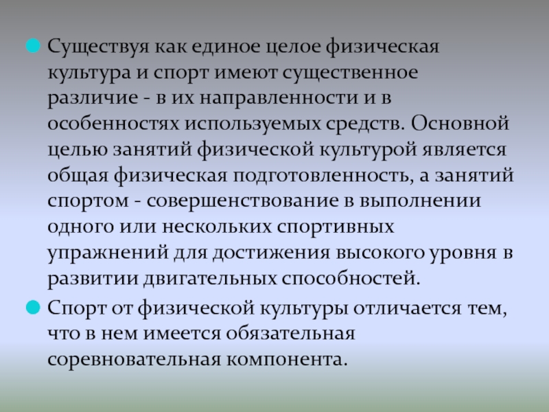 Существуя как единое целое физическая культура и спорт имеют существенное