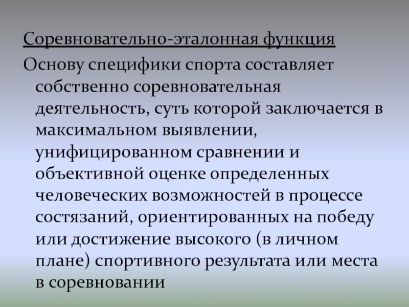 определенных человеческих возможностей в процессе состязаний, ориентированных на победу или достижение высокого (в личном плане) спортивного результата или места в соревновании
