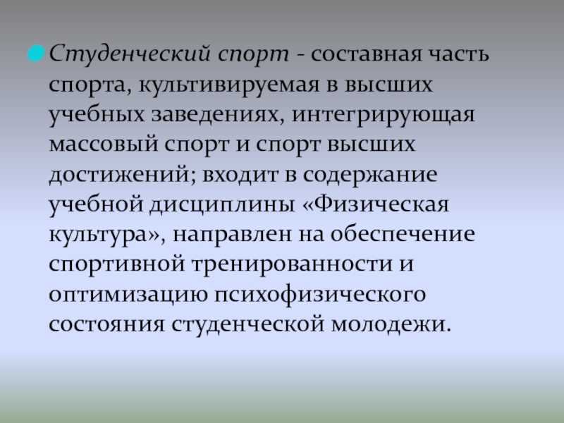 Студенческий спорт - составная часть спорта, культивируемая в высших учебных