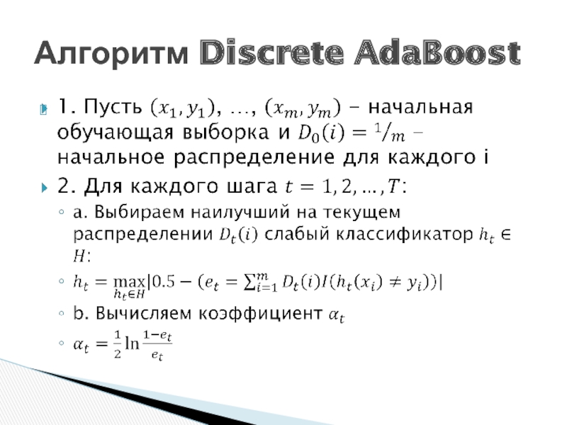 Слайд 21AdaBoost адаптивно настраивается на ошибки слабых классификаторов