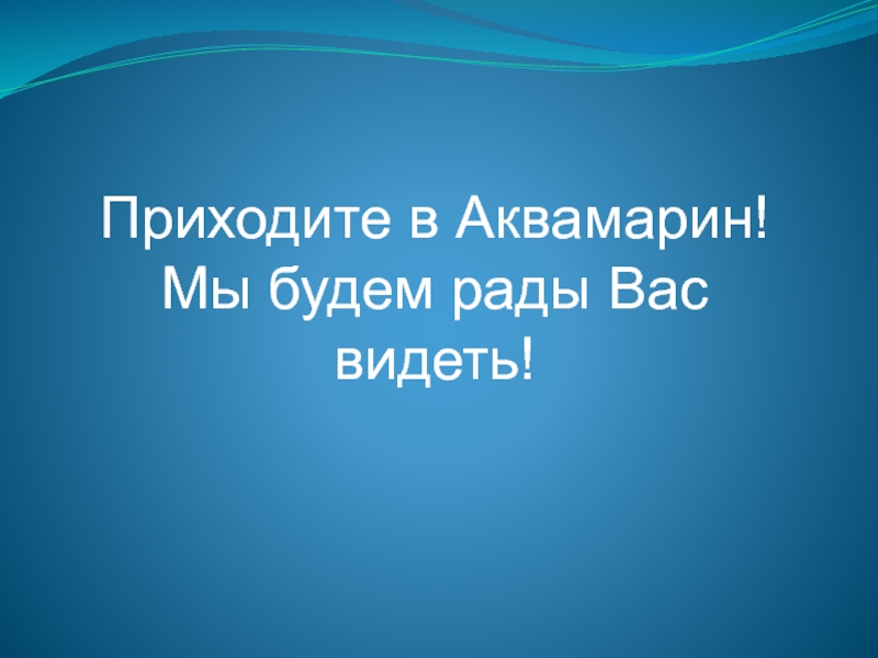Слайд 7Приходите в Аквамарин! Мы будем рады Вас видеть!
