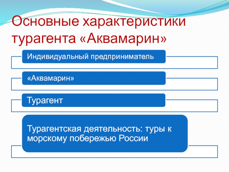 Слайд 4Основные характеристики турагента «Аквамарин»