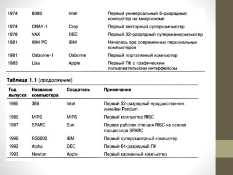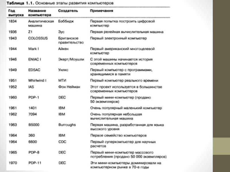 На следующем слайде приведем таблицу, содержащую основные этапы развития компьютеров