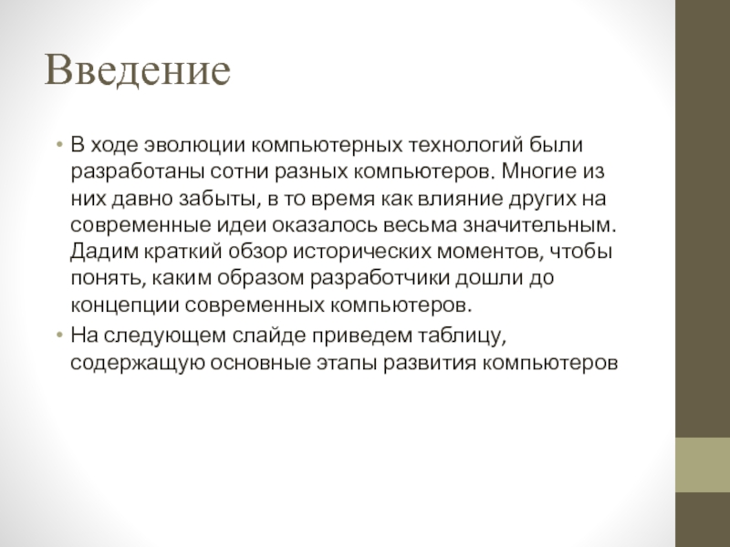 ВведениеВ ходе эволюции компьютерных технологий были разработаны сотни разных компьютеров. Многие из них давно забыты, в то