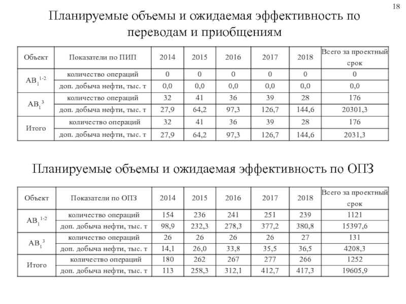 Планируемые объемы и ожидаемая эффективность по переводам и приобщениямПланируемые объемы и ожидаемая эффективность по ОПЗ18