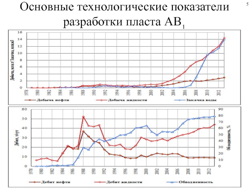 Слайд 5Основные технологические показатели разработки пласта АВ1