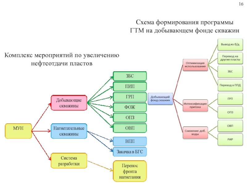 Схема формирования программы ГТМ на добывающем фонде скважинКомплекс мероприятий по увеличению нефтеотдачи пластов16