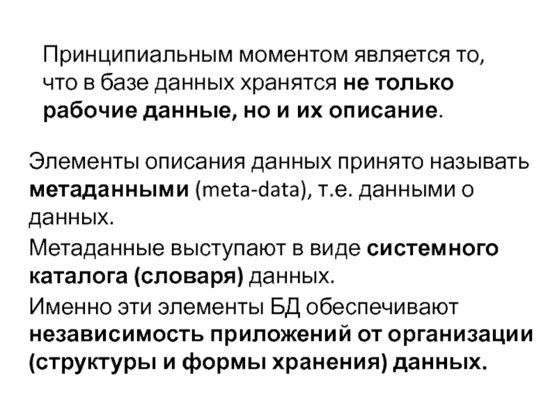 Слайд 10Принципиальным моментом является то, что в базе данных хранятся не