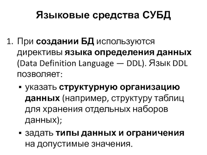 Слайд 13Языковые средства СУБД