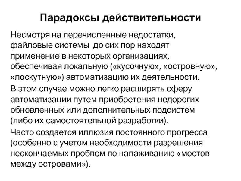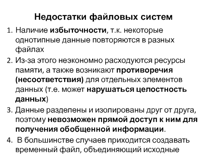 Слайд 4Недостатки файловых систем