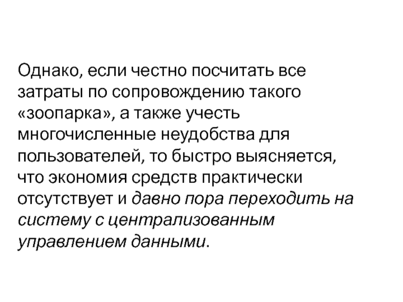 Слайд 7Однако, если честно посчитать все затраты по сопровождению такого «зоопарка»,