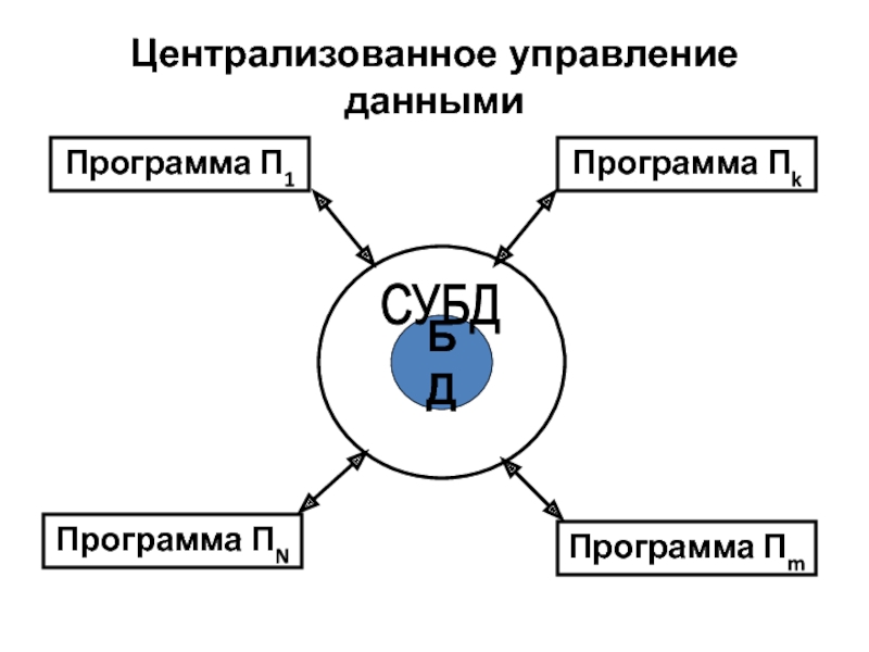 Слайд 9Основой централизованного управления данными является база данных (БД) как набор
