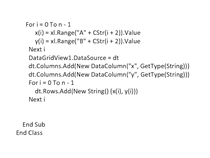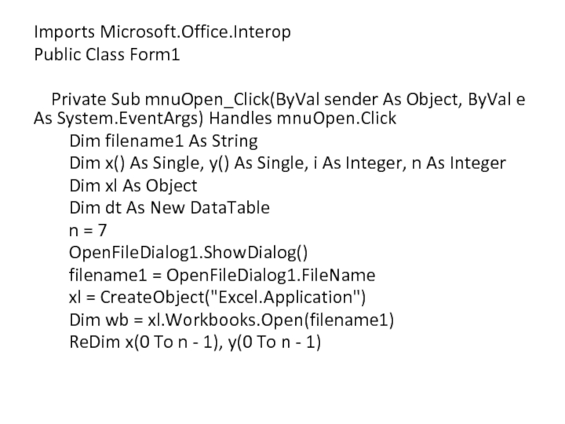 Dim filename1 As StringDim x() As Single, y() As Single, i As Integer, n As Integer