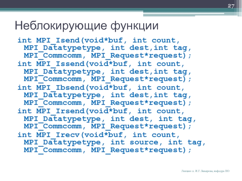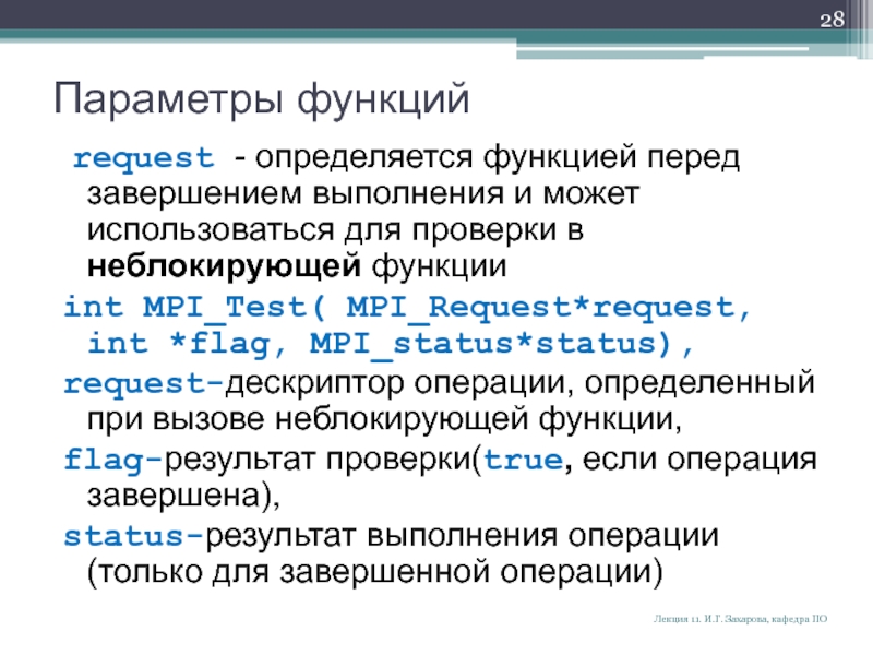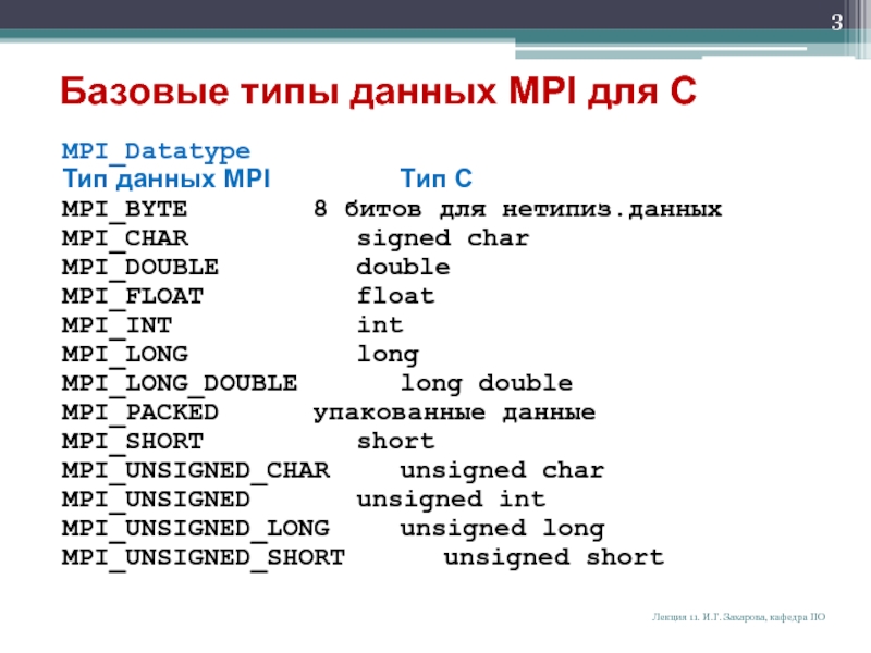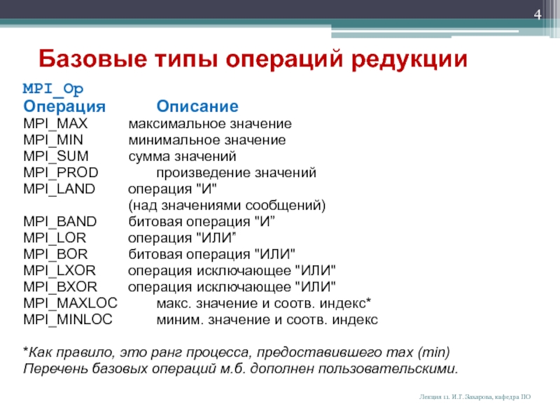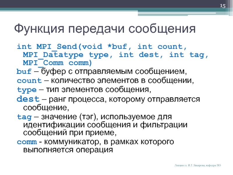 recvbuf – буфер для результирующего сообщения (только для процесса с рангом root),