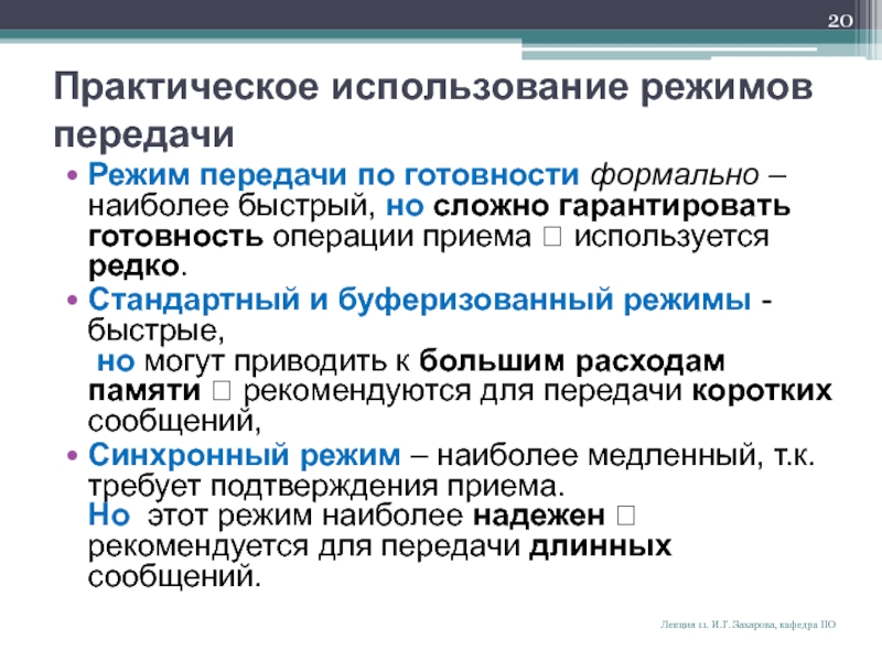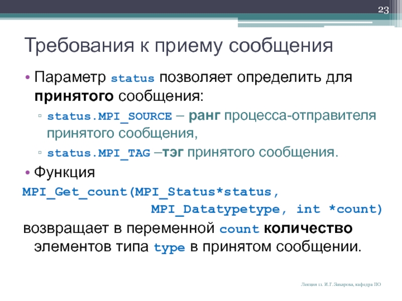 Лекция 11. И.Г. Захарова, кафедра ПО